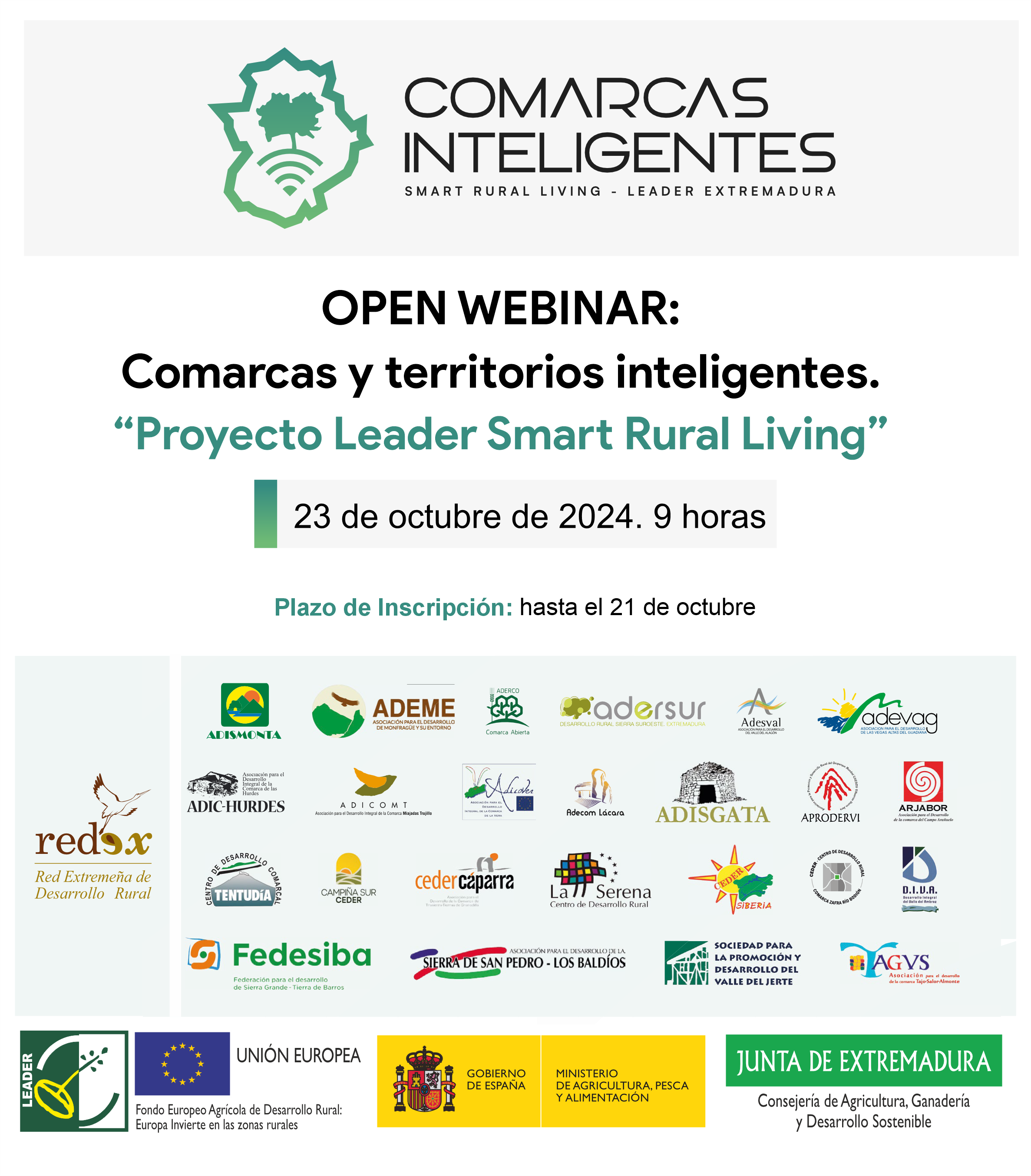 Comarcas Inteligentes es un Proyecto de cooperación interterritorial LEADER, cuyo objetivo es promover la transformación territorial (social, económica y digital) de las comarcas, mediante nuevos enfoques, estrategias y dinámicas impulsadas por los Grupos de Acción Local de Extremadura.